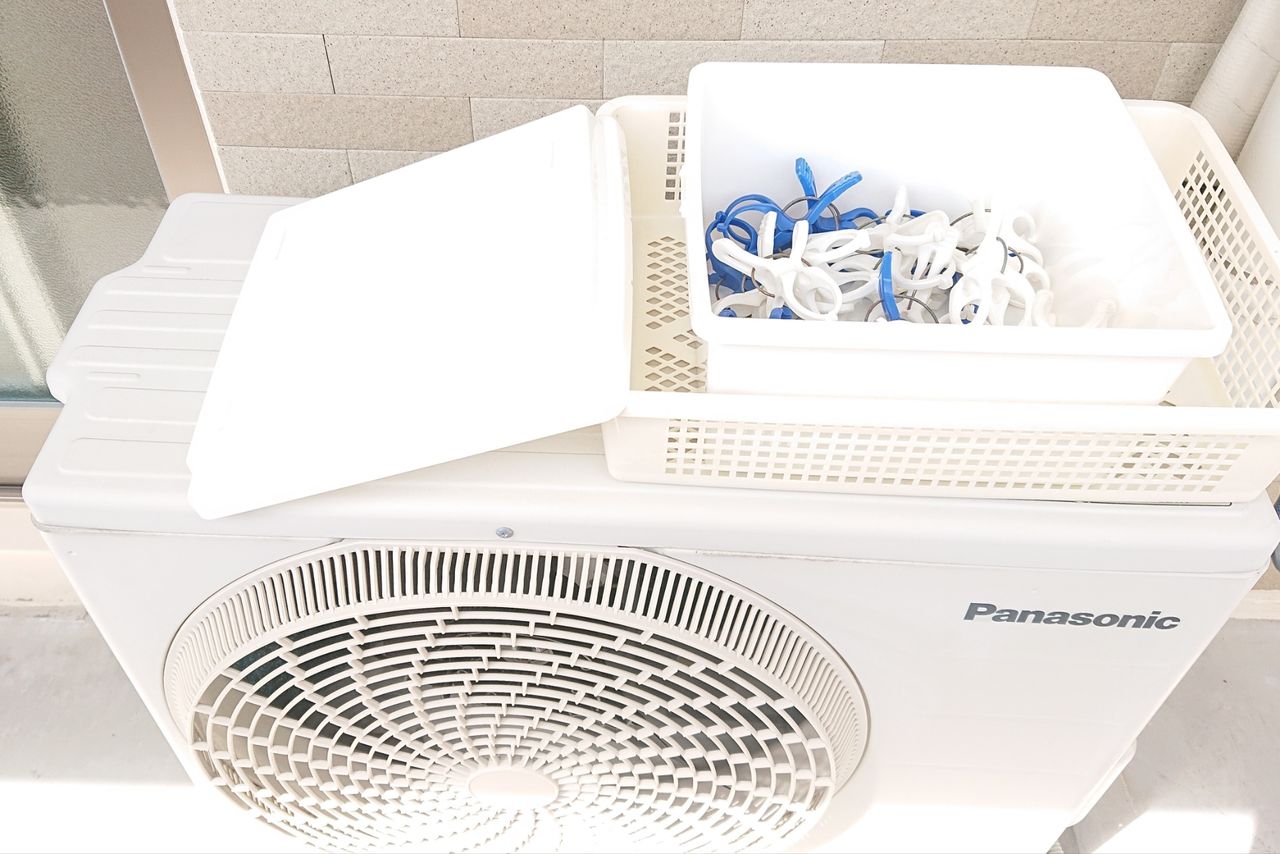 蓋付きのBOXをベランダの洗濯ピンチ入れに